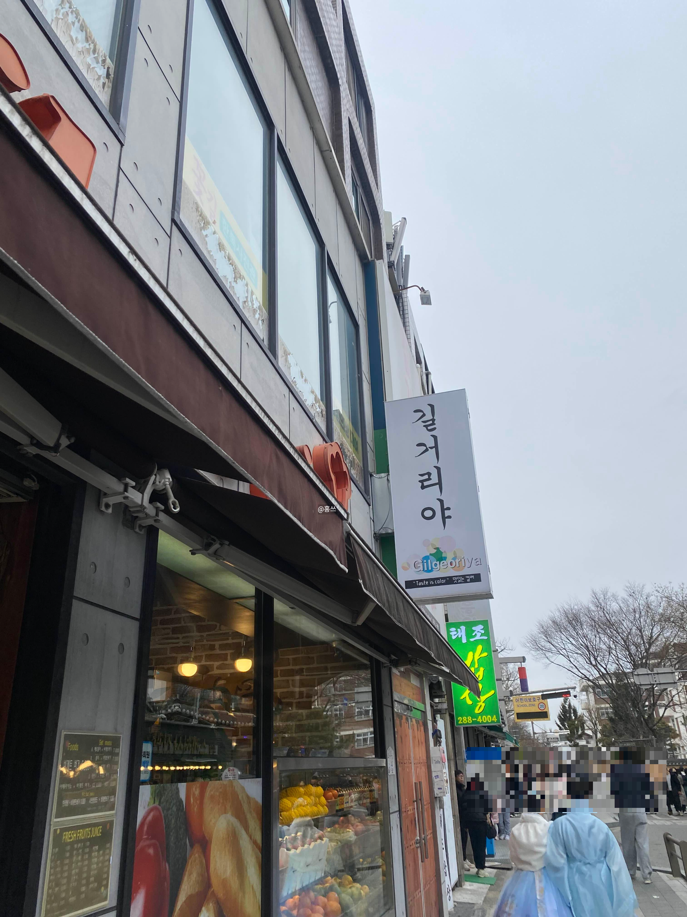 그다음 전주한옥마을에서 가장 유명한 거 같은 바게트버거 길거리야