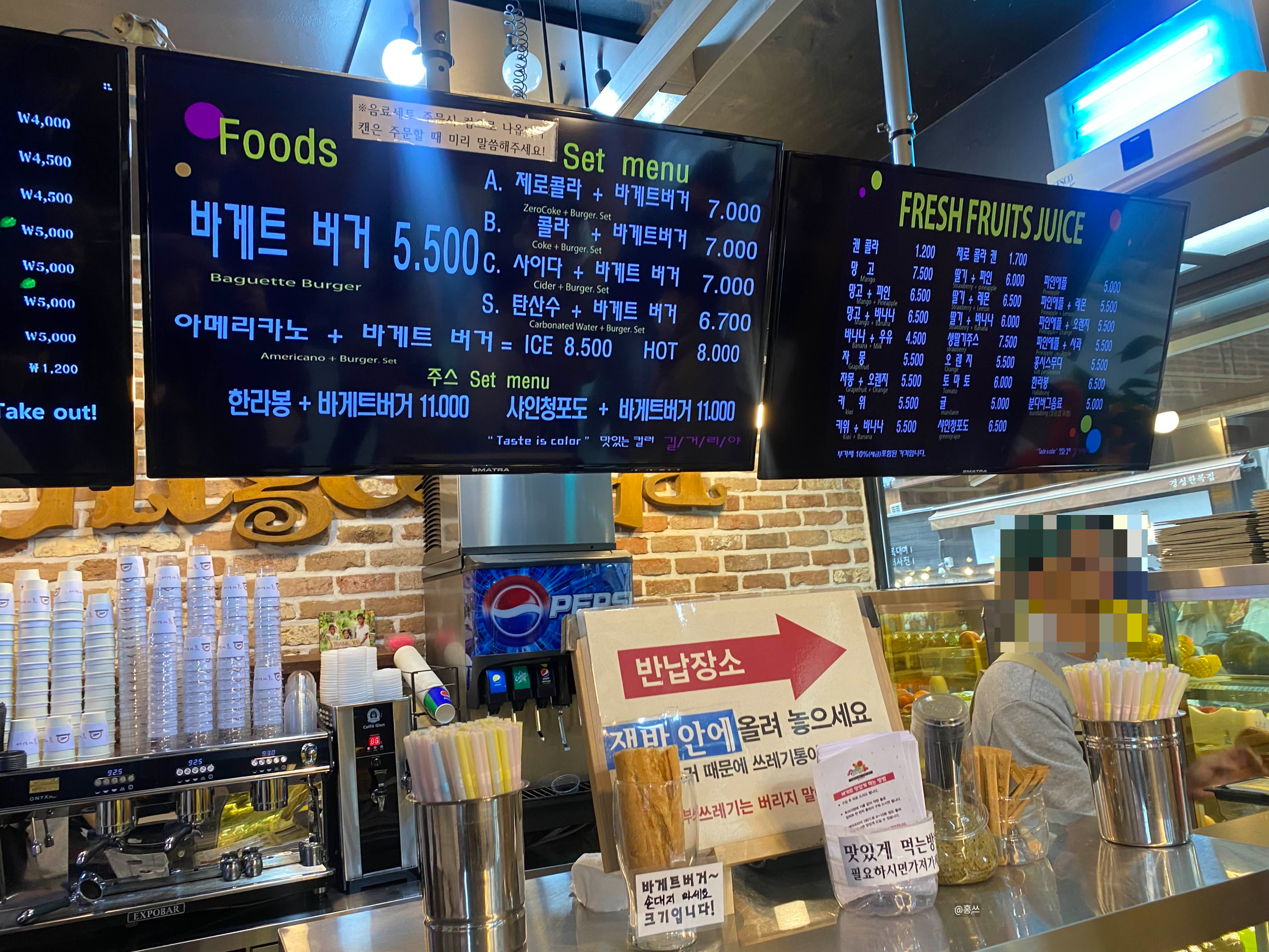 바게트 버거가 만들어져 있는 상태라 그런지 주문하고 10초 안에 주문한 게 다 나옴
